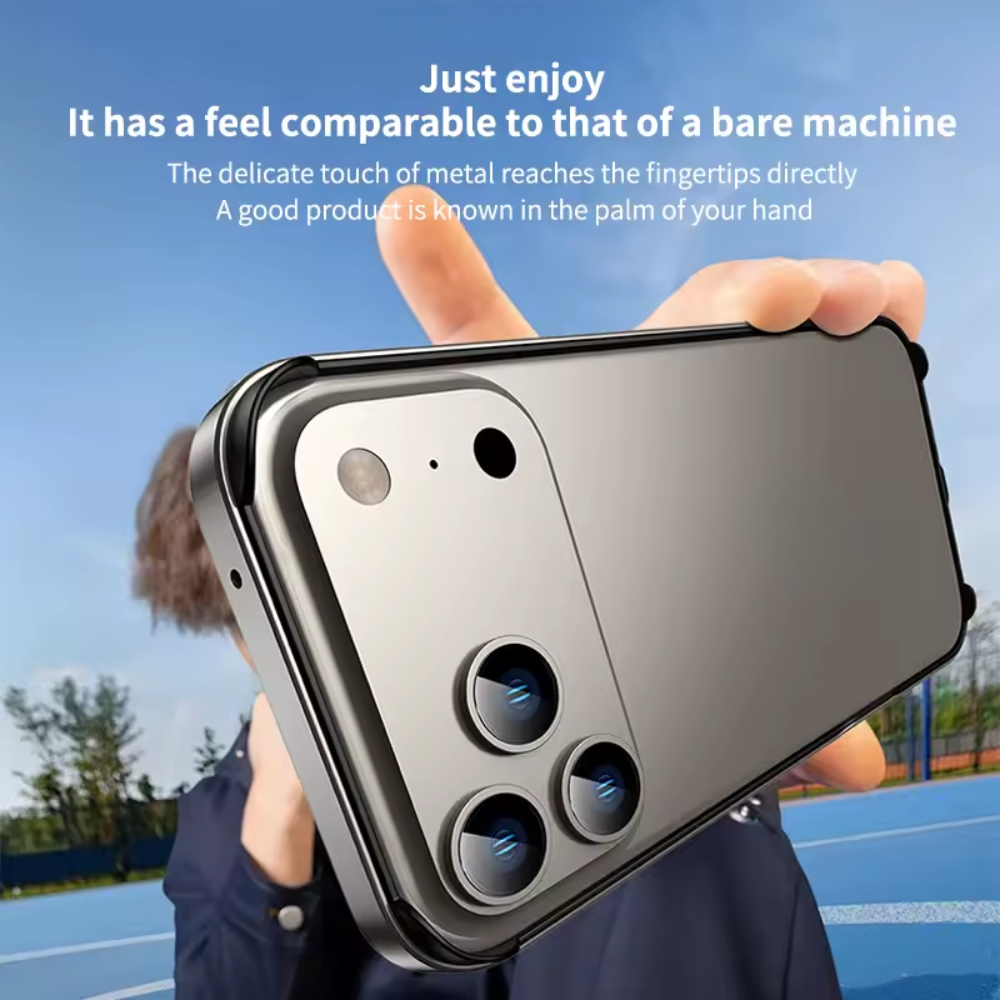 The LumoFrame™ Luxury Alloy Bumper Case redefines elegance with its naked-back design and precision-engineered metal frame. Crafted from high-grade aluminum alloy, it combines minimalist style with uncompromising protection. Soft silicone corner pads absorb impact, while the smooth interior lining keeps your iPhone scratch-free. Designed for those who love the feel of a bare phone but demand premium protection—this case delivers the best of both worlds.